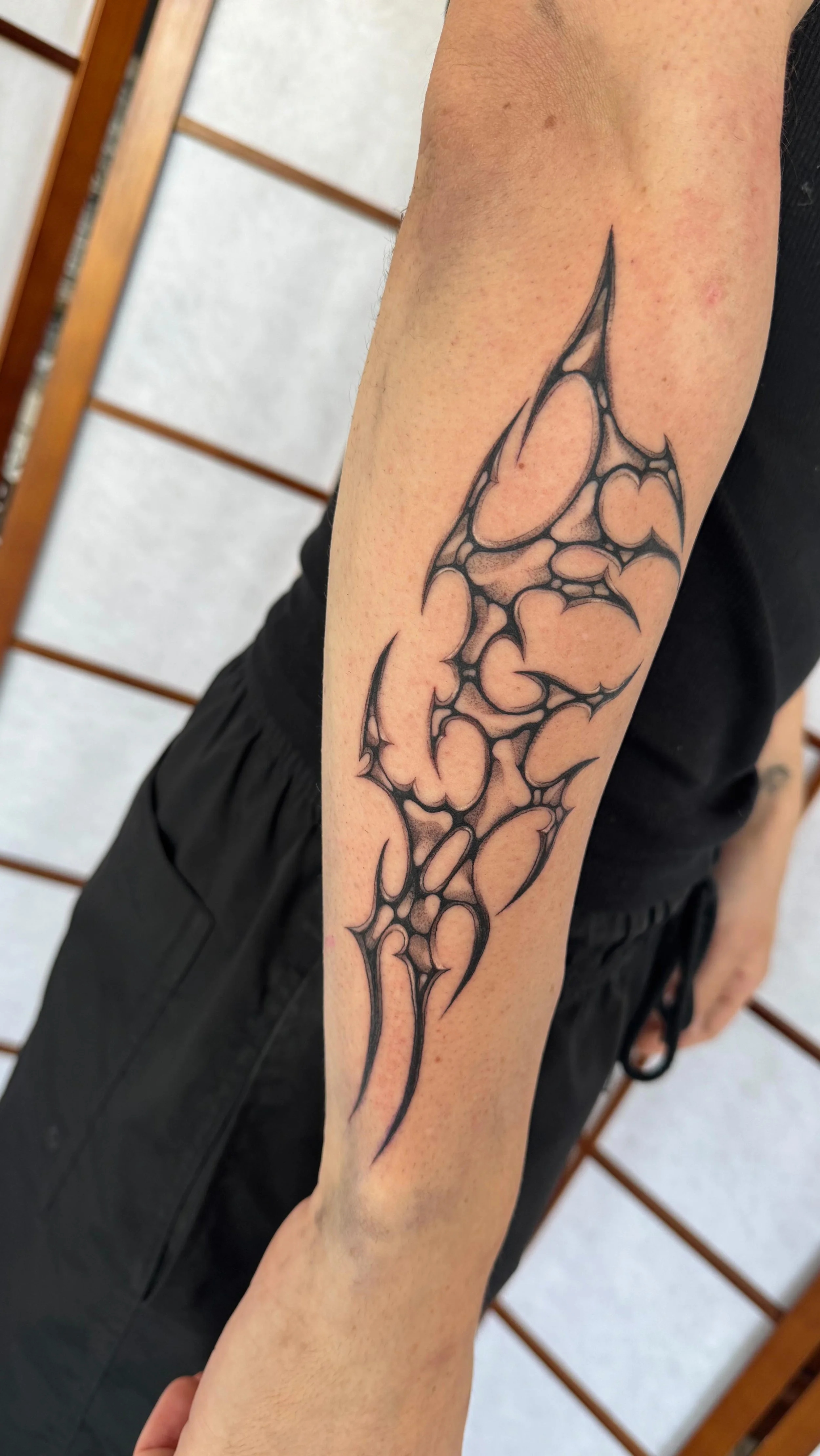 Tattooing since 2020 and unafraid to take on all subject matter, Jade wants to be a well rounded artist. She loves all things Anime and Manga, with a soft spot for blackwork, stippling and cybersigilsm so her work often appeals to a younger generation. Jade is extremely neat. happy to do anything, readily available and always pushing to do bigger work.